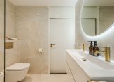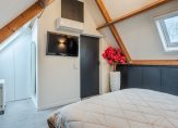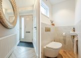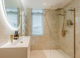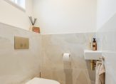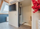 De nieuwe badkamer (2023) is fris, strak en van alle gemakken voorzien: een inloopdouche, modern wastafelmeubel, handdoekradiator en tweede toilet.
