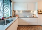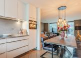 De keuken (2020) met nieuwe apparatuur (2023) is modern en stijlvol, compleet met hoogwaardige inbouwapparatuur en een vernieuwd werkblad, achterwand, spoelbak en kookplaat. Alles is netjes geïntegreerd voor optimaal comfort.