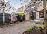 De verzorgde achtertuin (Zuidoosten) is een heerlijke plek om te ontspannen. Dankzij de achterom, het in 2023 vernieuwde doek van het automatische zonnescherm en de stenen berging is het een praktische en sfeervolle buitenruimte. Ook aan de voorzijde woon je rustig: de autoluwe straat met speeltuin direct voor de deur maakt dit een ideale plek voor kinderen.