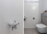 Entree, ruime ontvangst-hal met meterkast, volledig betegelde toiletruimte met wandcloset en fontein, deur naar inpandige berging (voormalige garage) met elektra en openslaande deuren naar achtertuin.