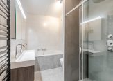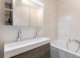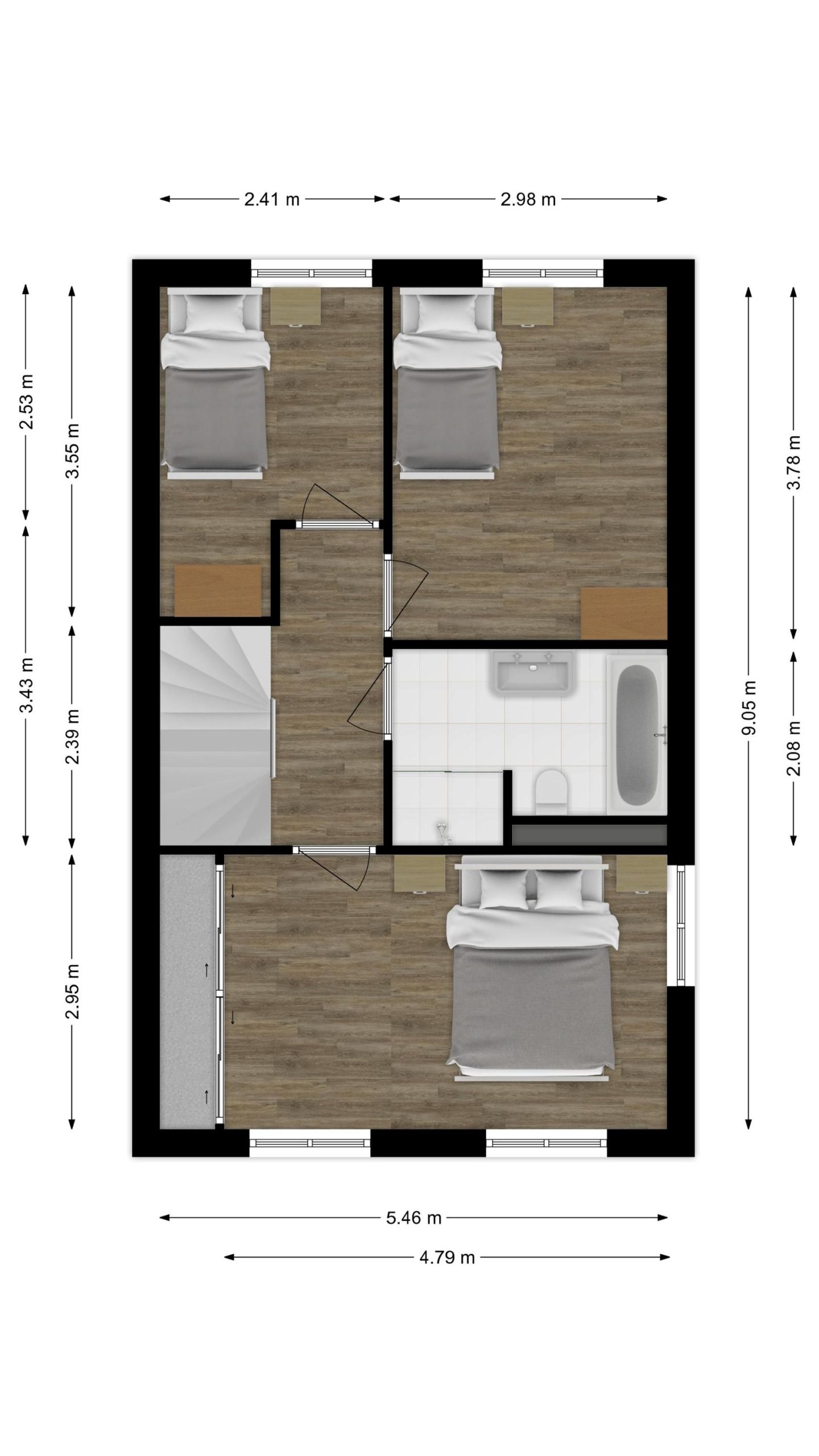 Via de vaste trap in de grote hal is de ruime overloop te bereiken. Vanaf de overloop is er toegang tot 3 slaapkamers en de badkamer. Aan de achterzijde bevinden zich 2 slaapkamers en aan de voorzijde is de woningbrede hoofdslaapkamer met ingebouwde kast. De tussengelegen badkamer is voorzien van inloopdouche, wandcloset, ligbad en handdoekradiator.