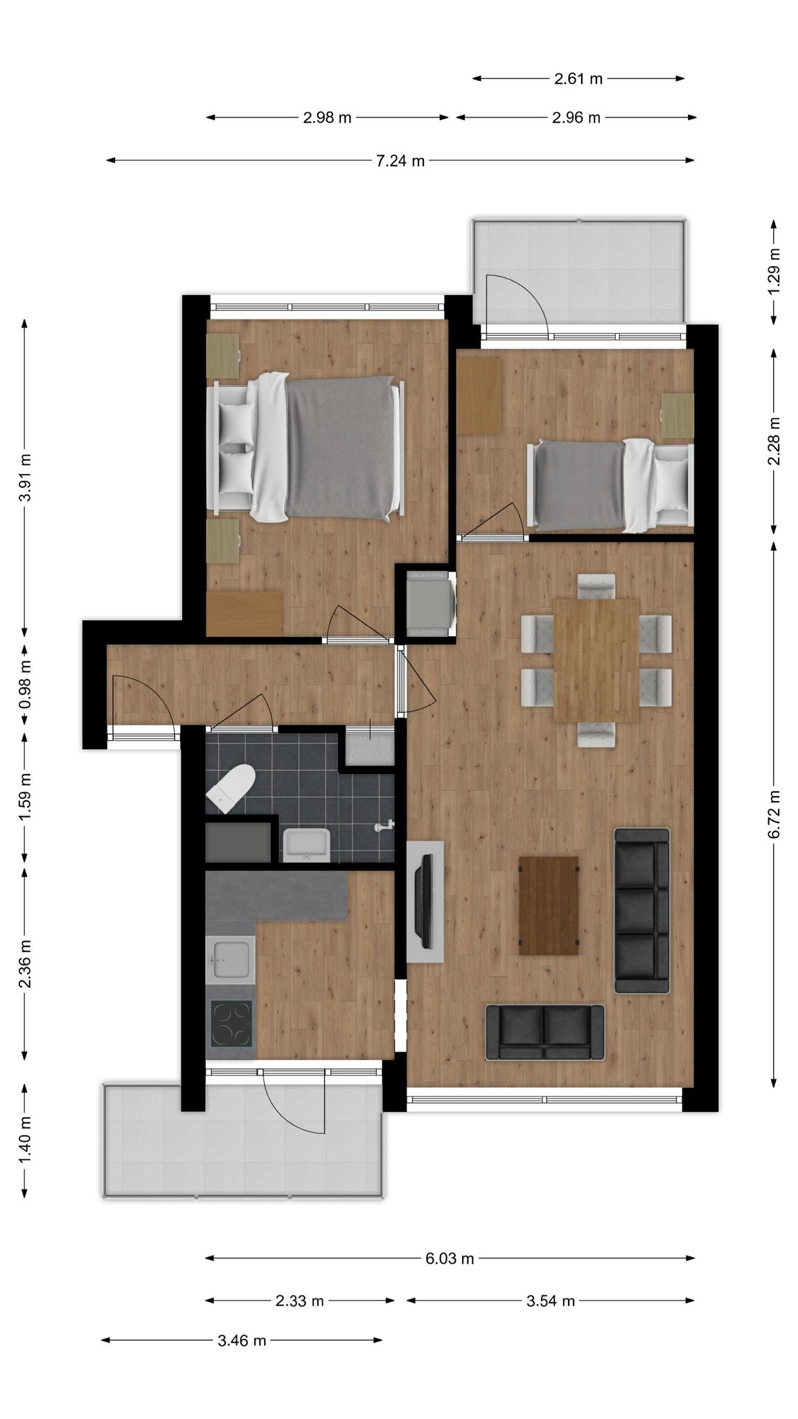 • Verzorgd 3-kamer appartement;