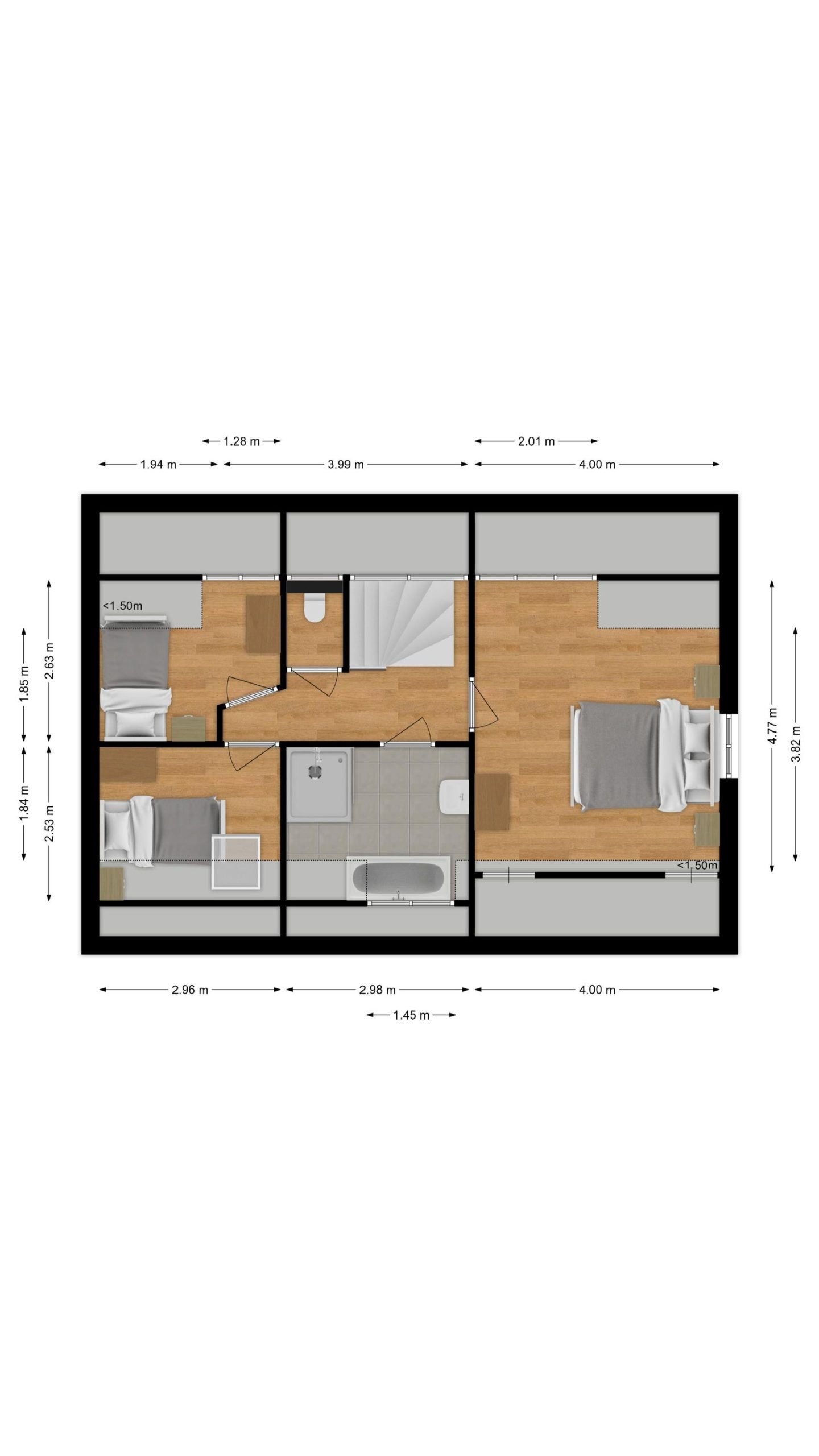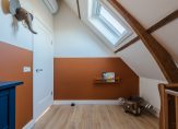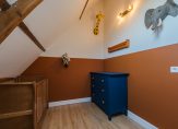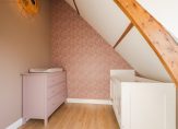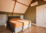 Van de oorspronkelijk grote 2e slaapkamer zijn 2 praktische kinderkamers gemaakt. Beide kamers beschikken (eveneens) over een airco, en de hoge plafonds met traditionele spanten bieden een prettige ruimtelijke beleving.