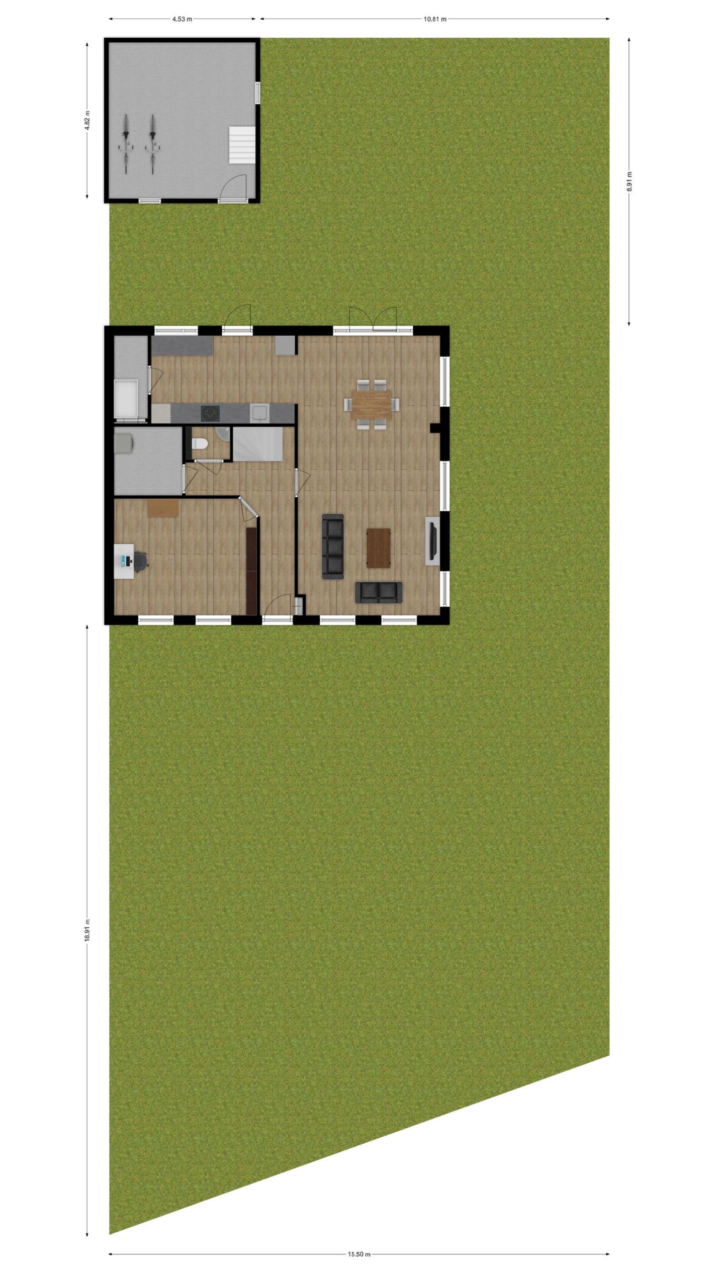 In de achtertuin staat een grote stenen berging/schuur met een ruime verdieping. Het houden van gereedschap, het opbergen van tuinmeubilair en/of het doen van een klusje kan in deze schuur gemakkelijk worden gecombineerd.