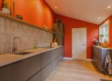 Aan de achterzijde tref je het eetgedeelte van de living en de open keuken (2021) welke is voorzien van inbouwapparatuur o.a. inductie kookplaat met ingebouwd afzuigsysteem, combi-oven, koelkast en vaatwasser. Aansluitend is een praktische bergkast (bijkeuken) met opstelplaats van cv-ketel (2021) en bergruimte, en met toegang tot de kelder.