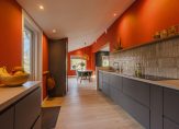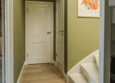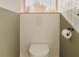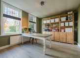 Voorheen was deze ruimte de badkamer, en, omdat de aansluitingen behouden zijn gebleven, is eenvoudig een (2e) badkamer te realiseren. Dit maakt het mogelijk om het volledige programma van wonen- slapen en baden op de begane grond te hebben.