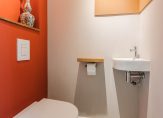 De toiletruimte is separaat, en voorzien van wandcloset.