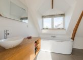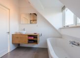 In 2021 is ook de badkamer op deze verdieping gerealiseerd. Dankzij de dakkapel aan de voorzijde is deze prettig ruim, en zonder meer luxe aangekleed. U vindt hier o.a. een ligbad, een douchecabine en een luxe badmeubel met wastafel.