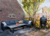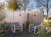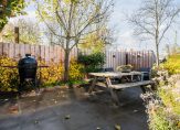 Zowel vanuit de woonkamer (via de openslaande deuren) als vanuit de keuken heb je toegang tot de heerlijke achtertuin met veel privacy en een grote stenen berging met verdieping.