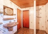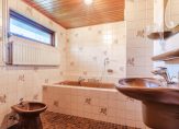 Zowel vanaf de overloop als vanuit de hoofdslaapkamer is toegang tot de badkamer. De badkamer is betegeld en voorzien van ligbad, inloopdouche, wastafel en bidet.