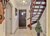 De entree van de woning is aan de oprit gelegen. Deze oprit is aan de voorzijde voorzien van een fraai en laag stalen hekwerk met elektrische poort. Bij binnenkomst in de woning is een hal met (uitgebreide) meterkast en hardhouten trap naar de verdieping. Bij de hal is een portaal met een garderobe en luxe toiletruimte met wandcloset en fontein.