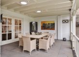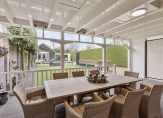De riante woonkamer is voorzien van een marmeren vloer, gestuukte wanden/plafond en een gashaard. In de woonkamer is voldoende ruimte voor een grote zithoek en een leuke werkplek. Aansluitend zijn er ‘en suite’ deuren naar de eetkamer met open woonkeuken. In de keuken staat een luxe maatwerk keukeninrichting compleet voorzien van inbouwapparatuur zoals inductiekookplaat, combi oven/magnetron, koffieapparaat, vaatwasser op hoogte en een koelkast. De eetkamer heeft openslaande deuren naar de veranda en biedt voldoende ruimte voor een grote eettafel met stoelen. Direct bij de keuken is een portaal met kastenwand en buitendeur naar de tuin en veranda. Deze veranda is gebouwd in 2008 en met 29 m² zeer royaal te noemen. Solatubes zorgen voor extra licht bij de veranda en er zijn verwarmingen aanwezig. De veranda is dan ook een verlengde van de leefruimte en een heerlijke plek om te zitten en van de tuin te genieten.