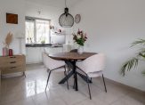 Via de hal met garderobe is de woon-/eetkamer met half open keuken bereikbaar. De lichte woonkamer is speels ingedeeld, meet een oppervlakte van circa 25 m² en biedt voldoende plek voor een royale zithoek en eettafel.