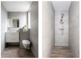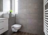De gemoderniseerde badkamer is geheel betegeld in een courante kleurstelling en voorzien van een tweede toilet (hangend met ingebouwde spoeling), inloopdouche en een wastafelmeubel. Ventilatie geschiedt op natuurlijke wijze middels een openslaand raam.