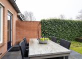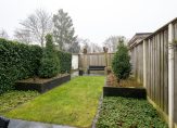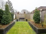 De fraaie tuin met meerdere terrassen is te bereiken vanuit de woonkamer en is fraai qua ontwerp. Grote terrastegels, meerdere borders met beplanting en een groot gazon maken het geheel onderhoudsvriendelijk en toegankelijk.