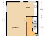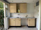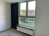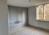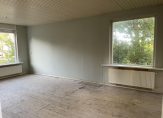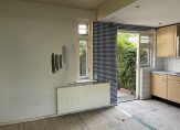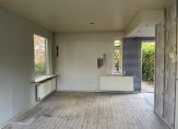 De woonkamer is verrassend licht door de grote ramen aan zowel voor- als achterzijde. De doorzonwoonkamer maakt de woonkamer een fijne ruimte waar u zelf als nieuwe bewoner de vloeren, wanden en plafonds nog naar eigen smaak kan afwerken. Vanuit de keuken de toegangsdeur naar de tuin.