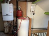 Via de trapopgang bereikt u de voorzolder. Hier hangt de C.V.-ketel, het boilervat van de zonneboiler en de omvormer van de zonnepanelen.