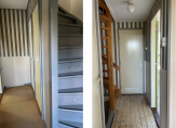 Via de voortuin loopt u richting de voordeur. Binnenkomend in de entree/hal heeft u toegang tot de meterkast, trapkast, toiletruimte, woonkamer en trapopgang naar de verdieping.