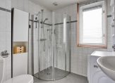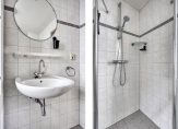 – badkamer met douchecabine, wastafel, toilet en wasmachineaansluiting.