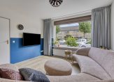 De woning straalt licht en ruimte uit. De doorzonwoonkamer heeft grote raampartijen waardoor het daglicht rijkelijk binnenvalt. Aansluitend vind je de halfopen keuken met tuindeur; een fijne plek om te koken en te genieten van het uitzicht op de riante tuin.