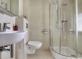 De overloop geeft toegang tot 3 slaapkamers, een badkamer en een vaste kast. De badkamer is goed onderhouden en uitgevoerd in neutrale tinten. Hij beschikt over een wastafel, douche en toilet en biedt voldoende mogelijkheden om naar eigen wens aan te passen of uit te breiden.