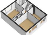 U bereikt deze verdieping via een vaste trap. Op de overloop bevindt zich een praktische berging met de opstelplaats voor de cv-ketel en een aparte wasruimte, voorzien van een dakraam en de aansluitingen voor de wasapparatuur. De verdieping wordt compleet gemaakt door een zolderkamer met aan beide zijden een dakkapel. Deze kamer is uitstekend te gebruiken als extra slaapkamer of hobbyruimte.