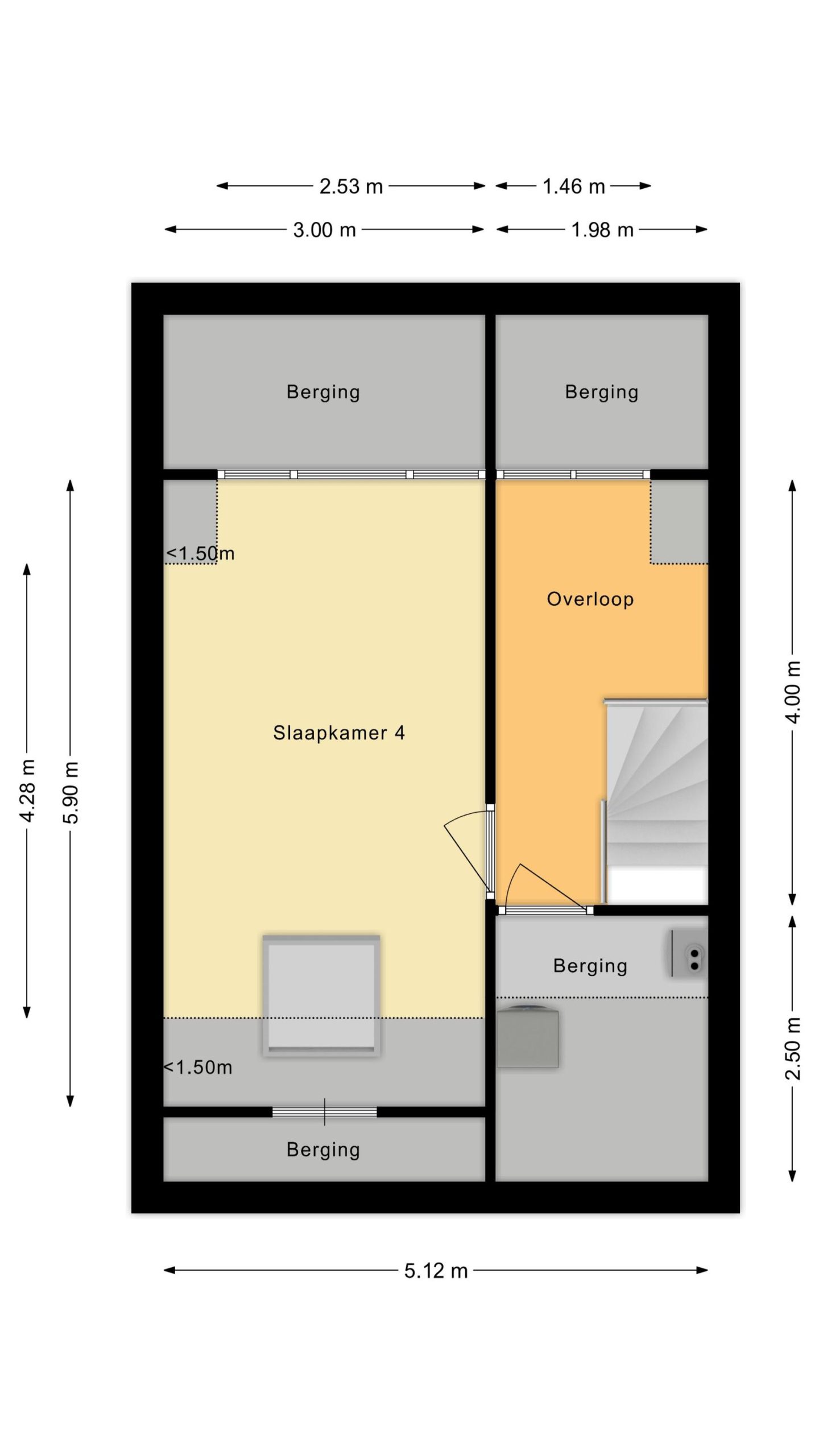 Slaapkamer IV ruime kamer met dakkapel, dakraam en veel bergruimte achter de knieschotten.