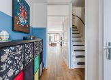 Entree, hal, garderoberuimte, hangend toilet met fonteintje, meterkast, vaste trap naar de eerste verdieping en toegang tot de woonkamer met open keuken.