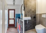 De badkamer is voorzien van een inloopdouche, (bubbel)ligbad, 2e hangend toilet, wastafelmeubel en sierradiator.