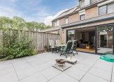Diepe voortuin is gelegen op het noorden. De verzorgde, beschutte achtertuin geeft veel privacy en is gelegen op het zuiden en is voorzien van een terras, een achterom en een stenen berging met elektra.