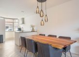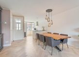 De moderne keuken ligt aan de voorzijde van de woning gelegen, met gezellige erker. De keuken is voorzien van inbouwapparatuur, zoals een inductiekookplaat, RVS afzuigkap, vaatwasmachine, koelkast en vriezer.