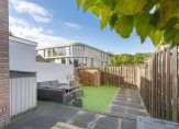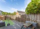 Keurige voortuin op het oosten en gezellige achtertuin gelegen op het westen. De verzorgde achtertuin is voorzien van een terras, (kunst)grasgazon, houten bergkast en een achterom.
