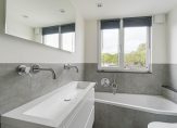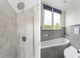 De badkamer is voorzien van een royale inloopdouche, ligbad, 2e hangend toilet, dubbel wastafelmeubel en vloerverwarming.