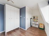 Vaste trap naar de tweede verdieping met brede dakkapel aan de achterzijde. Hier is de ruime slaapkamer III gelegen, voorzien van airco en veel bergruimte achter het knieschot aan de voorzijde.