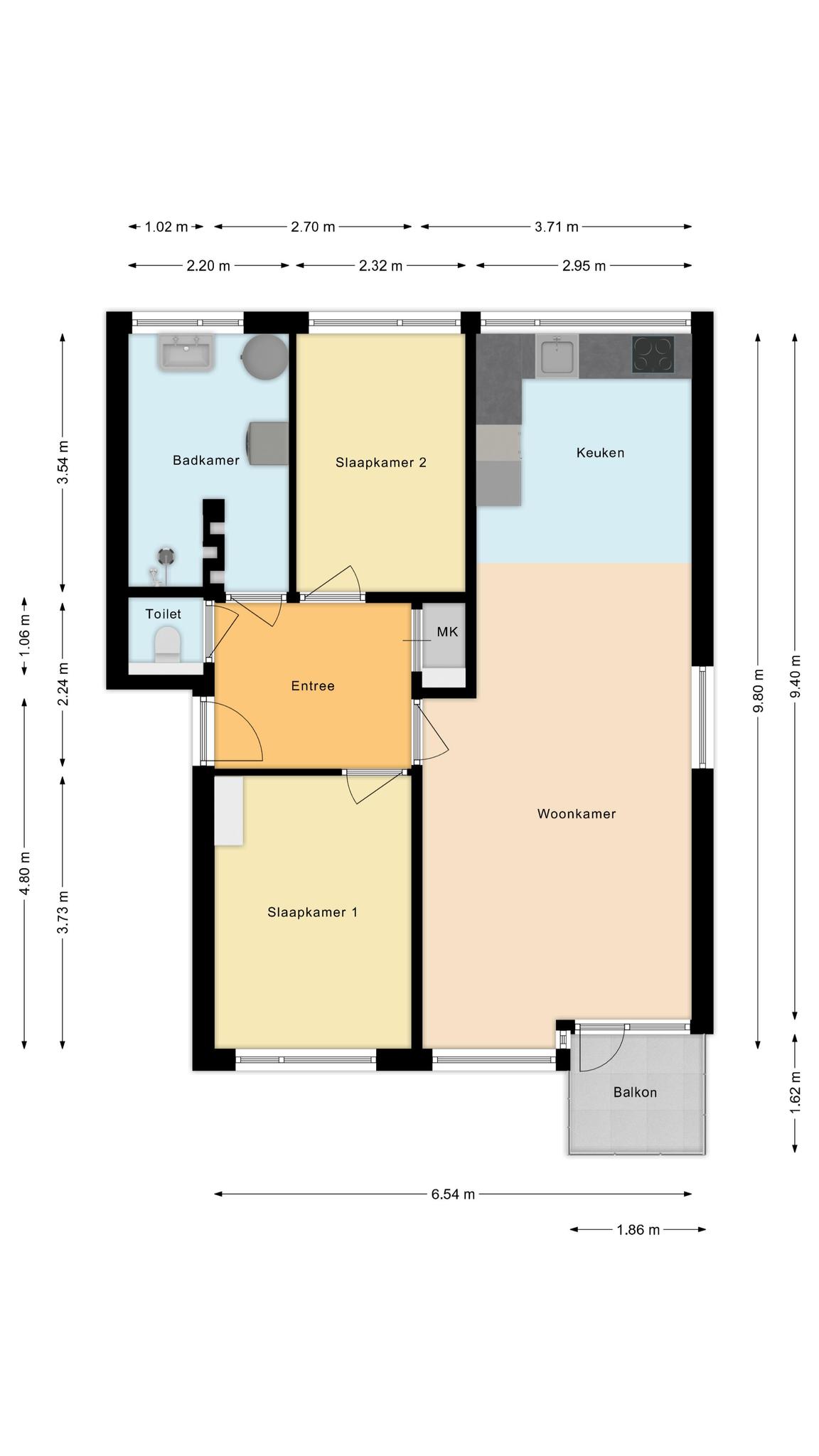 De oppervlakten en algeheel resultaat zijn opgebouwd conform de Branche Brede Meet Instructie (BBMI) afgeleid van de NEN2580. Aan de oppervlakten en inhoud(en) kunnen geen rechten worden ontleend.