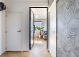Entree, ruime hal met garderoberuimte, vaste (voorraad)kast en meterkast, toiletruimte met hangend toilet en toegang tot alle vertrekken van het appartement.