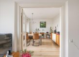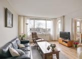 De royale en zeer lichte woonkamer bestaat uit twee grote ruimten die gescheiden kunnen worden door openslaande deuren. Deze kamer is ideaal om als eet- of als slaapkamer te gebruiken. De woonkamer biedt toegang tot het zonnige balkon op het zuiden met een elektrisch zonnescherm waardoor je er heerlijk (uit de wind) kunt genieten van het uitzicht.