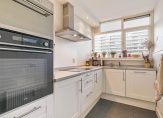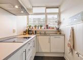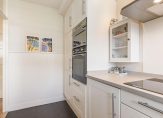De dichte keuken is gelegen aan de galerijkant en voorzien van diverse inbouwapparatuur zoals een oven, magnetron, inductiekookplaat, RVS afzuigkap, vaatwasmachine, koelkast en vriezer.