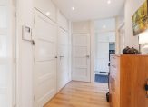 Entree, tochtportaal met garderobe en toegang tot de hal met meterkast, intercom, toiletruimte met hangend toilet en fonteintje, vaste kast voorzien van boiler en wasmachine- en drogeraansluiting en toegang tot alle vertrekken van het appartement.