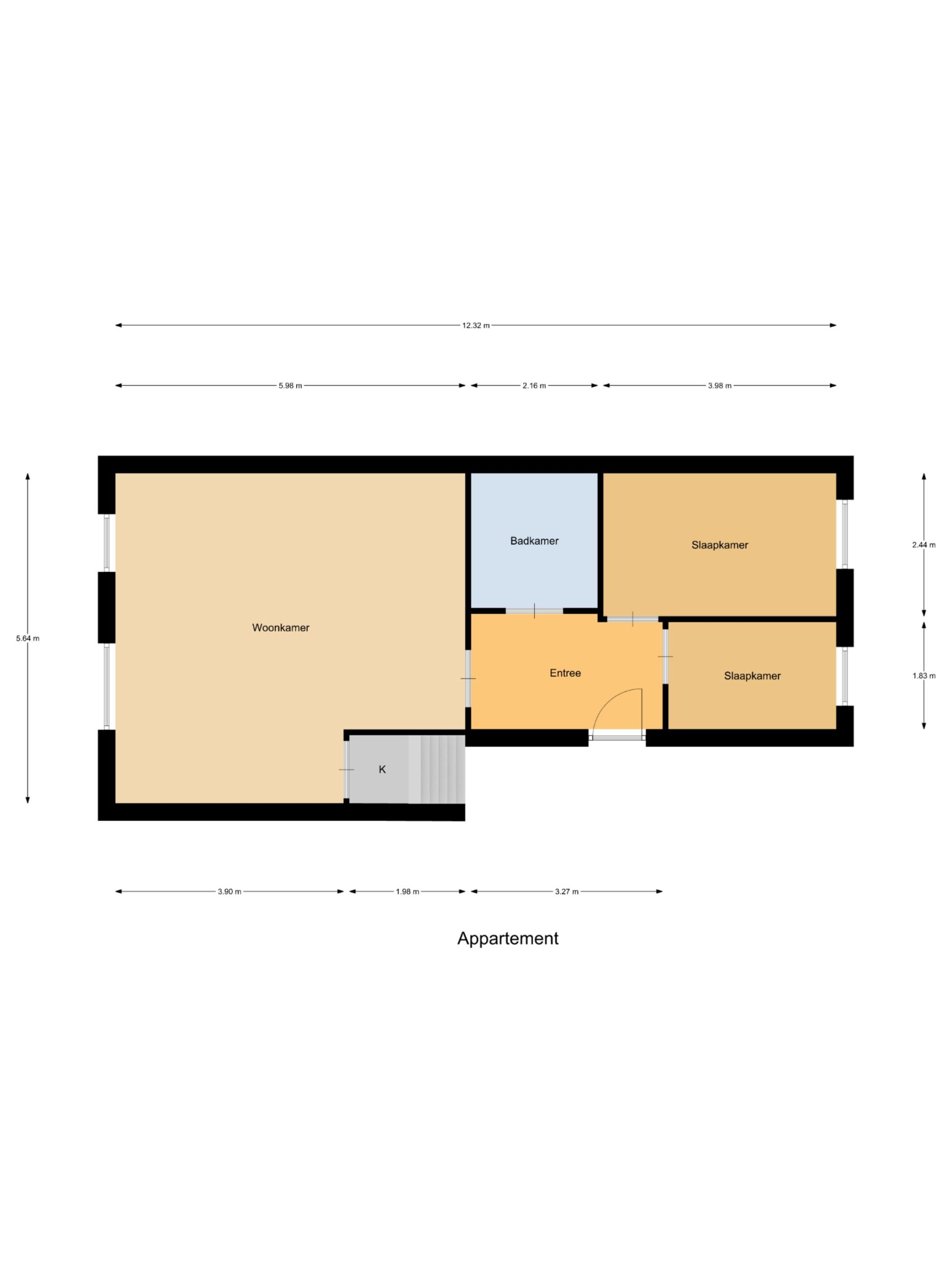 Middels een centrale hal is het appartement toegankelijk. Een ruime hal geeft toegang tot alle vertrekken van het appartement.