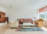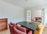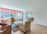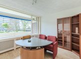 De royale lichte woonkamer, bevindt zich aan de achterzijde van het appartement en biedt toegang tot het zonnige balkon op het zuiden met leuk uitzicht op het Amsterdam-Rijnkanaal en groen. Aansluitend, via openslaande deuren, is de eetkamer bereikbaar.