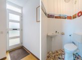 Entree, hal met garderobe, meterkast, toiletruimte met fonteintje en toegang tot de woonkamer met halfopen keuken.