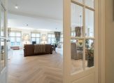 De woonkamer is voorzien van een parketvloer (visgraat).