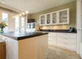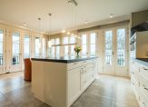 Middels dubbele deuren is de woonkamer – met gashaard – bereikbaar. De woonkamer heeft een prachtig uitzicht op de Vecht en meerdere openslaande deuren geven toegang tot 2 balkons. De keuken met kookeiland is voorzien van inbouwapparatuur van Siemens, te weten: oven, magnetron, koelkast, vaatwasmachine, Bora inductiekookplaat met afzuiging en Quooker. Het uitzicht vanaf de eettafel is schitterend en kijkt mooi weg over de Vecht.