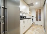 Vanuit de keuken is een praktische bijkeuken bereikbaar met eveneens toegang tot de hal. De bijkeuken heeft een aanrechtblad met gootsteen, Liebherr wijn- en vrieskast en een Liebherr koel- en biofreshkast). Verder is hier de aansluiting voor de wasmachine en droger en een vaste schuifdeurkast met veel bergruimte.