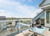 Het beschutte balkon is gelegen op het zuiden en heeft zowel uitzicht het water als over de weilanden. Hier kun je heerlijk genieten van de zon en het uitzicht. Het balkon is te betreden vanuit de keuken en de woonkamer.