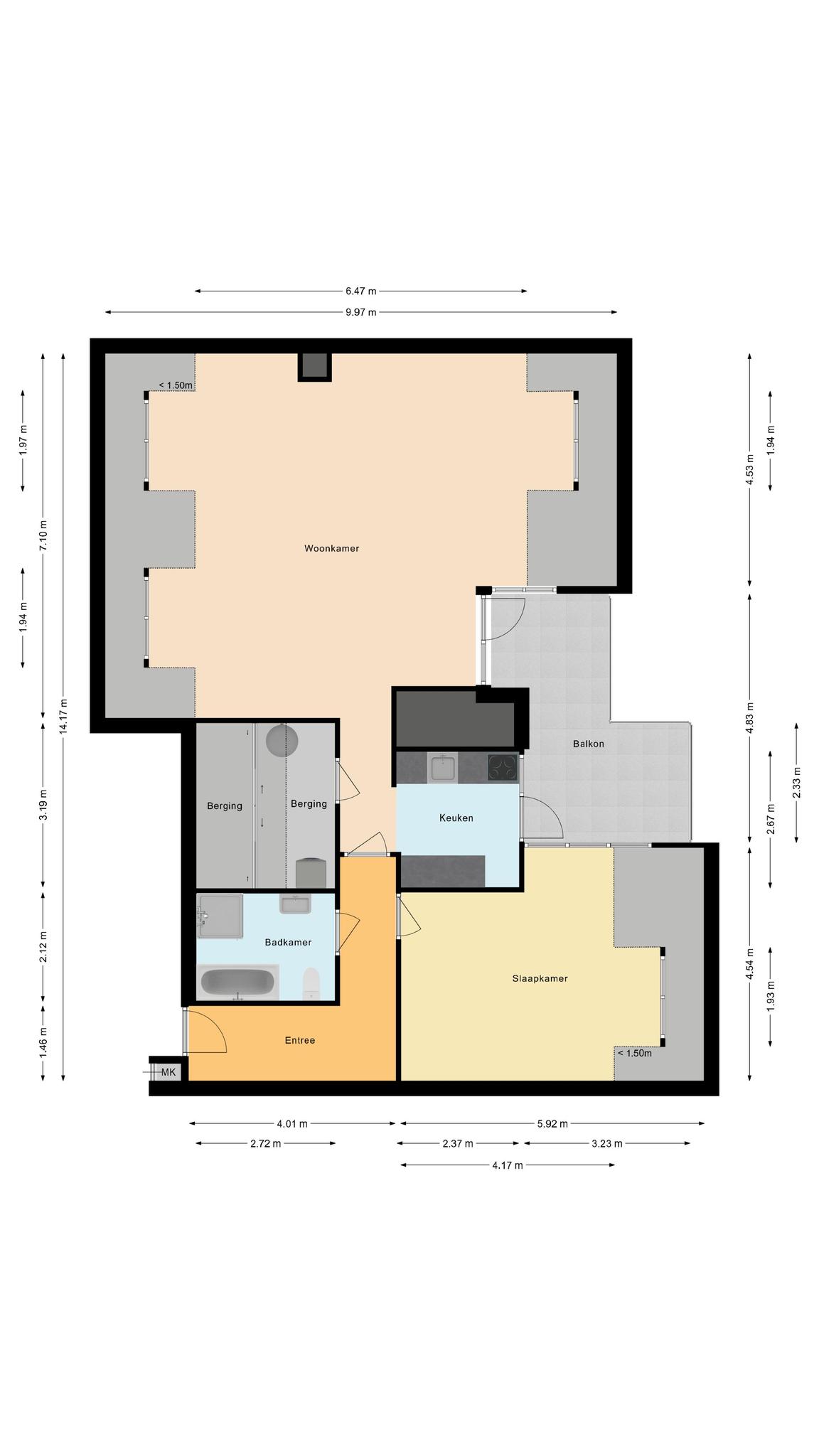 De oppervlakten en algeheel resultaat zijn opgebouwd conform de Branche Brede Meet Instructie (BBMI) afgeleid van de NEN2580. Aan de oppervlakten en inhouden kunnen geen rechten worden ontleend.