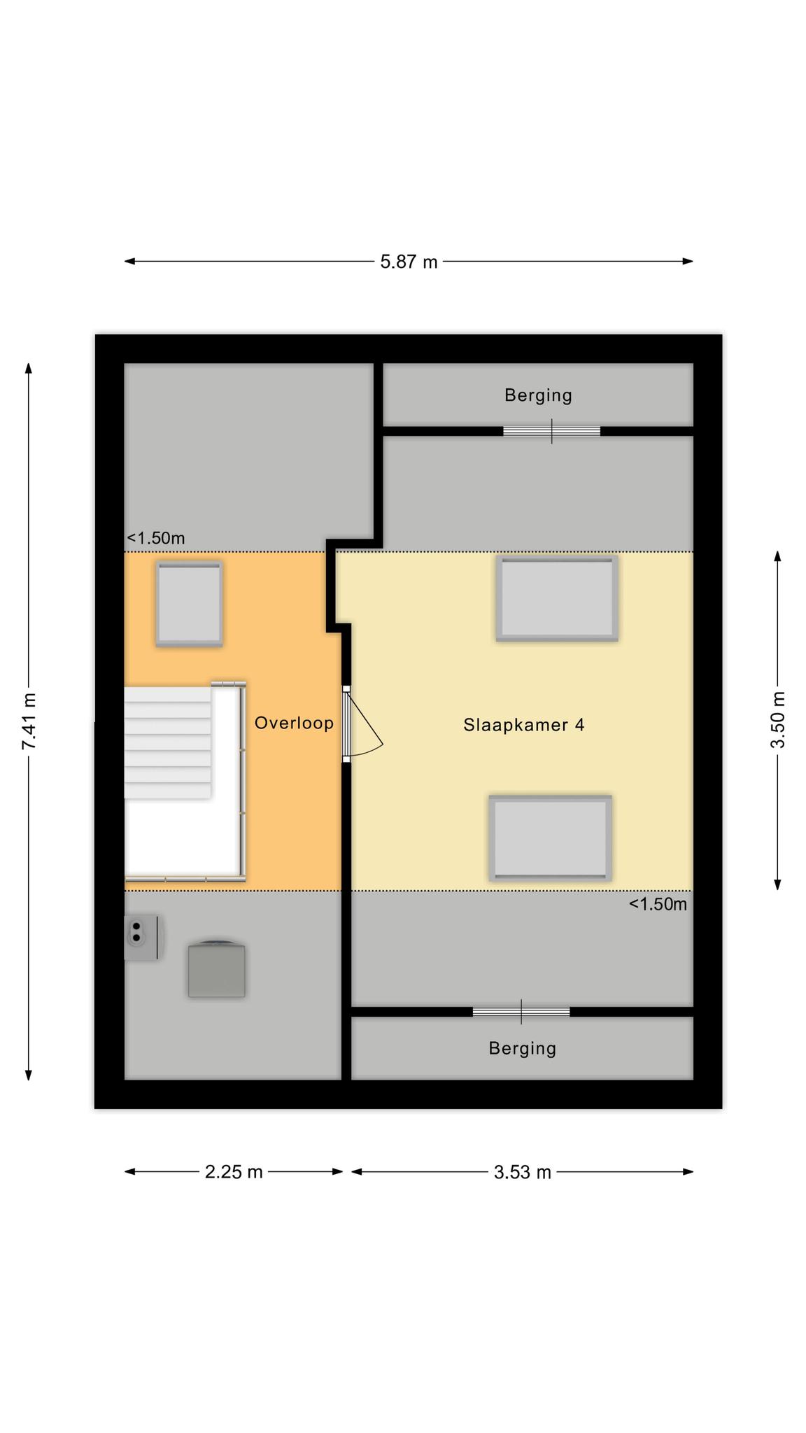 Slaapkamer IV is een ruime kamer met 2 dakramen en veel bergruimte.