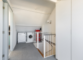 Vaste spiltrap naar voorzolder met wasmachine/drogeraansluiting, CV combiketel, vaste kastenwand en toegang tot 4e en 5e slaapkamer met dakkapellen (voor- en achterzijde).
