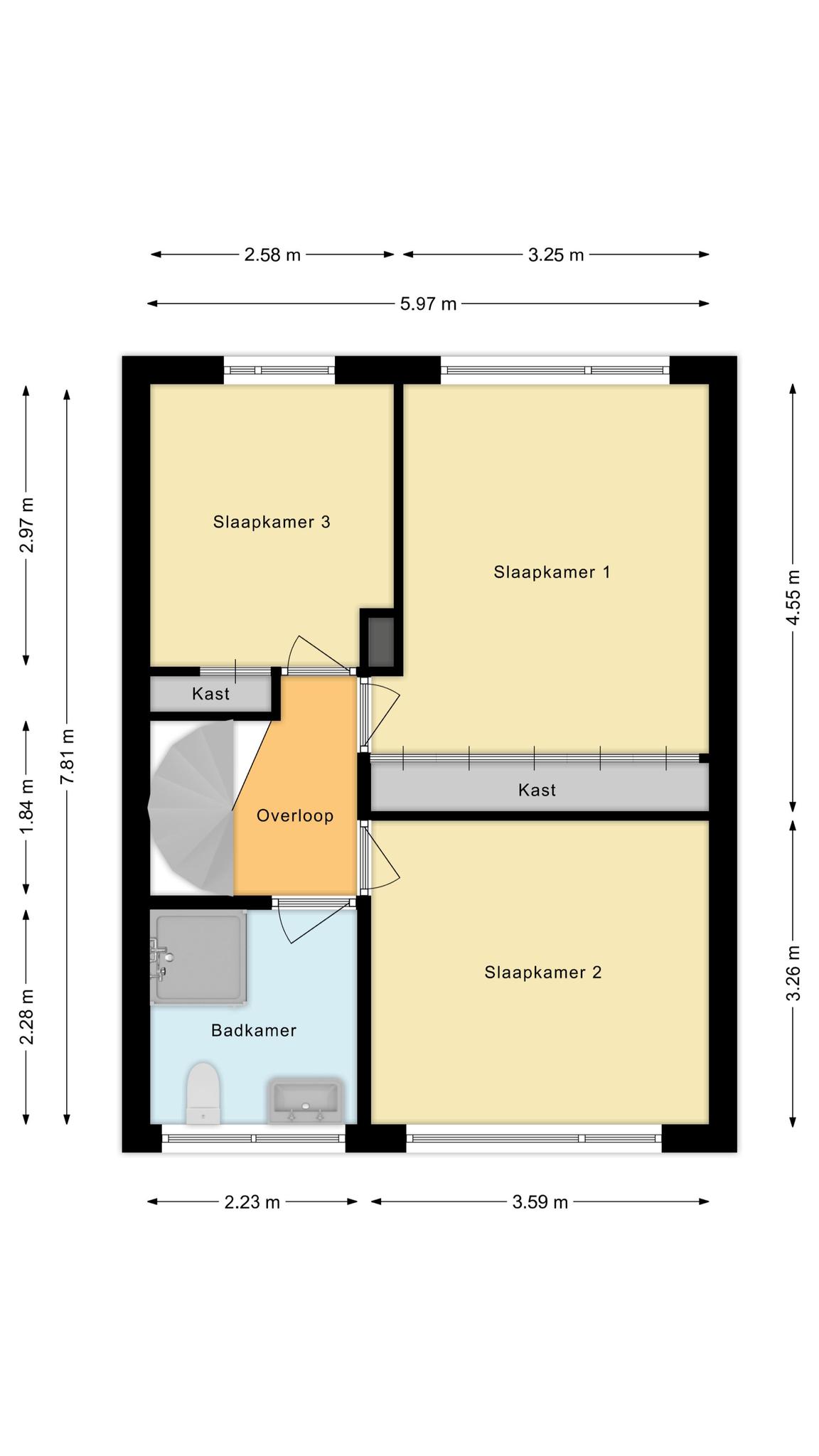 Via een vaste spiltrap is de eerste verdieping bereikbaar met overloop, voorzien van een vaste kast, 3 slaapkamers en een badkamer.